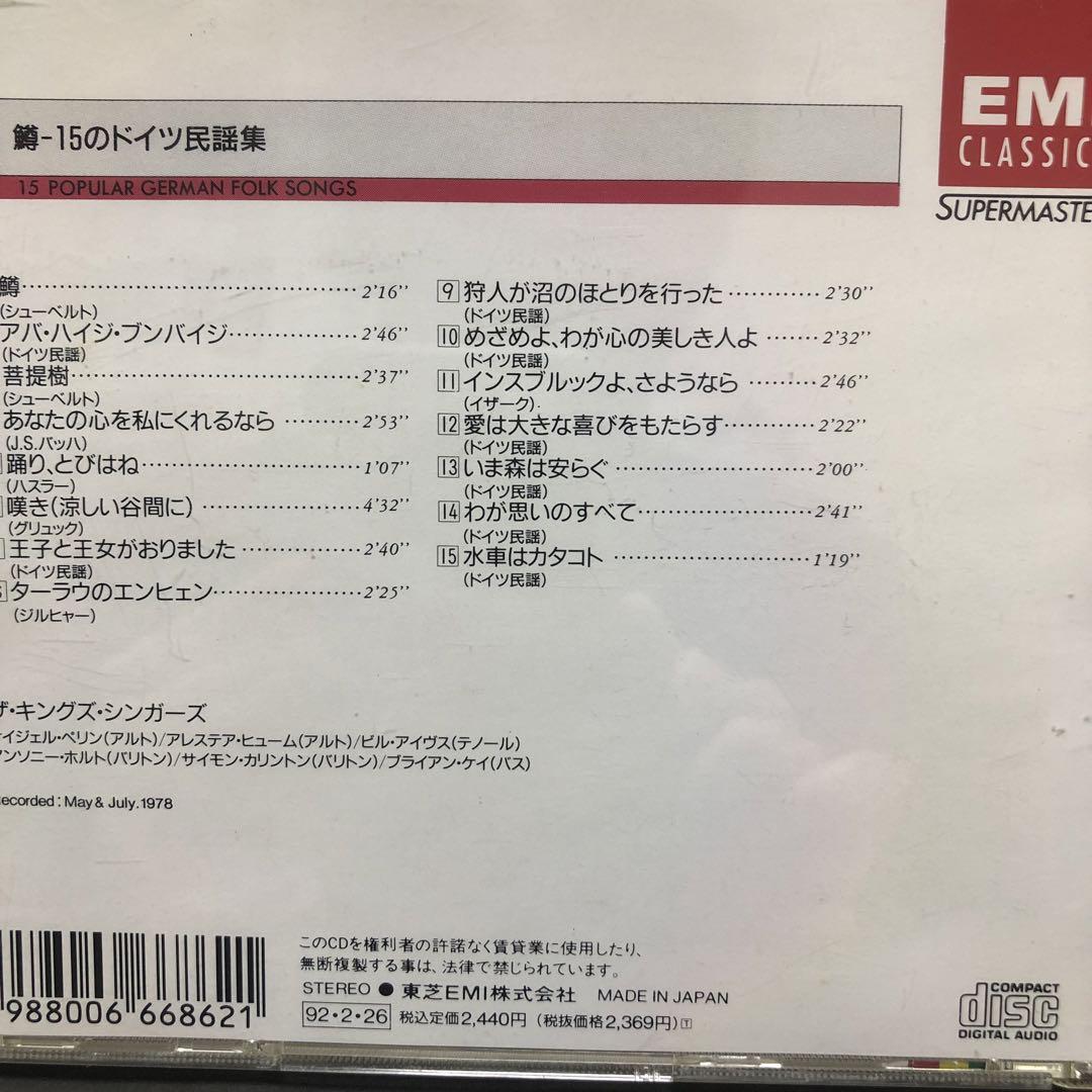 Fifteen Popular German Folk Songs CD EMI 7665 back